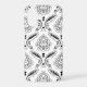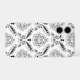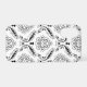 A vintage style decorative damask surface pattern influenced by rococo classical design in black line and leaf fill details on a white background.