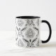 A vintage style decorative damask surface pattern influenced by rococo classical design in black line and leaf fill details on a white background.