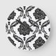 Rococo Damask Off-Set Pattern Black on White Round Clock
