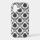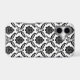 A vintage style decorative damask surface pattern influenced by rococo classical design in black detail on a white background.