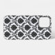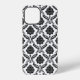 A vintage style decorative damask surface pattern influenced by rococo classical design in black detail on a white background.