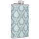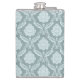 Rococo Damask Pattern Duck Egg Blue+Teal Hip Flask