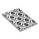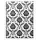 A vintage style decorative damask surface pattern influenced by rococo classical design in black and grey details on a white background.