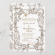 Rococo flourish border in a Mocha monochrome. Elegantly placed Monograms and a classic font for a modern touch.
