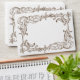 Mocha brown monochrome theme with modern typography. Inside features Rococo floral flourish in mocha on white. Outside front floral frame.