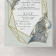Romantic, asymmetrical values, blue & pink pastel colours and curves with serpentine lines, & gold classical relief of love and playfulness with a Victorian-style masks design for the wedding couple.