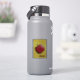 A red rocoto chilli pepper is decorated with patterns inspired by the colourful textiles of Peru and sits on a yellow background with a smaller version of the same pattern and a script label in the corner. This spicy pepper is eaten in Peru and Bolivia and has been cultivated in the area since pre-Incan times.