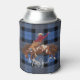 Rodeo Bronco Busting Cowboy On Plaid Can Cooler