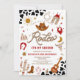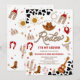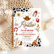 Saddle up for a fun-filled celebration with this western rodeo themed 2nd birthday invitation! Featuring playful cowboy motifs like hats, boots, lassos, cacti, and steer skulls against a bold cow print background, this design perfectly captures the spirit of a little wranglers big day. Ideal for kids birthday parties, it sets the tone for a lively event full of adventure and charm. Personalise easily with your party details to make it truly unique.