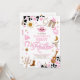 Saddle up for a fun-filled celebration with this rodeo-themed first birthday invitation! Featuring playful Western illustrations like cowboy hats, boots, lassos, cacti, and cow print accents in pink and brown, this design sets the perfect tone for a festive party. The bold fonts and colourful layout make it easy to customise with your childs details, ensuring guests are excited to join the adventure. Ideal for little cowgirls and cowboy-inspired birthday parties, this invitation blends charm and creativity for a memorable first rodeo.