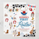 Saddle up for a fun-filled celebration with this rodeo-themed first birthday invitation! Featuring cowboy hats, boots, lassos, and Western-inspired details, this festive design is perfect for little cowboys and cowgirls. The bold cow print background and colorful illustrations create a playful, rustic vibe that sets the tone for an unforgettable party. Personalize with your event details to make it truly unique and give guests a charming keepsake.