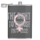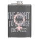 Stylish flask marking the overturning of Roe v Wade by the current Supreme Court, features grunge style "The right to choose. 1973-2022" text in grey with light pink female symbol on charcoal background.
