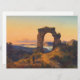 This design features a painting by the German artist Andreas Achenbach (1815–1910), who was associated with the Romantic movement and the Düsseldorf School of art. It depicts Roland’s Arch, a famous archway constructed out of stone and bricks. It is located on a hill high above the Rhine Valley in Germany. The arch is known as "Rolandsbogen" in the German language. A traveller can be seen here standing in front of the arch and admiring the majestic view of the Rhine River that can be seen through it. There is a beautiful red sunset in the sky. The original artwork was painted in 1834.