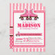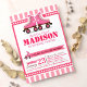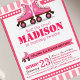 Celebrate your birthday party with our Pink Roller Skate Sport design. Featuring roller skating shoes on pink stripes pattern. This trendy design is perfect for roller disco or glow party. A perfect Roller skating party invitations for your little girl's retro roller skating party, roller skating party, glow roller skating party.