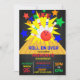 Roll on over for a bowling birthday party with bright primary colours set on a black chalkboard background. Personalise with your party information and you're ready to go.