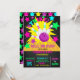 Roll on over for a bowling birthday party with neon, girly colours set on a black textured background. Personalise with your party information and you're ready to go.