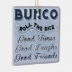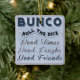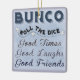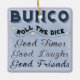 Good Times, Good Laughs and Good Friends sums up a good game of Bunco. Roll the Dice features three white Bunco dice. Nice Bunco ornament for a gift exchange, Bunco prize or Bunco decoration. Display this Bunco ornament on a tree, hang from your cars rear view mirror or display in your office.