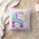 Fun design for 80's lovers or roller skaters featuring a retro illustration of a roller skate in blue with pink and a faux gold glitter thunder bolt designed on it. The typography text says "ROLL WITH IT" in fun hand written fonts. Inspirational and funny quote.