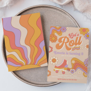 Let's Roll Roller Skate Retro 70s Birthday Party Invitation