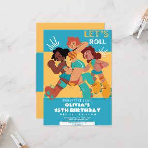 Let's Roll Kids Roller Skate Girl Birthday Party Invitation