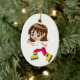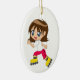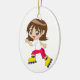 Ornament with a cute cartoon girl roller blading (or inline skating)