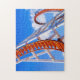 Bring the fun and joy of amusement parks home with you with this colourful photo puzzle. This roller coaster curves and loops around and soars up high.The bright blue sky contrasts with the orange and white metal in the structure. The level is just a little challenging so kids can enjoy as well as adults.
