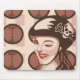 Vintage inspired rollergirl image in pink and brown 5 colour palette on repeating background.