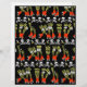 Black scrapbook paper with a repeating design of legs in yellow and black striped stockings, red roller skates and kneepads. Stripe of skulls and killer bees divides the legs.