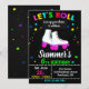 Let's roll with this fun roller skate birthday invitation! Features white roller skates with pink wheels and rainbow laces on chalkboard background with neon stars and confetti. Perfect for skating-themed birthday parties, roller rink celebrations. Retro design with bright colors creates excitement. Great for kids who love roller skating, disco, and retro vibes. Create a rolling good time for your skater's special day!