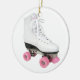 80s fad to be sure, and a fun way to symbolize the era! Here is a round ceramic ornament with an image of a white and pink roller skate on the front, solid pink on the back. See the entire Tubular 80s Ornament collection in the PARTY FAVORS section.