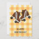 Roller Skate Skating Peach Gingham Birthday Holiday Card