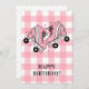 Roller Skate Skating Pink Gingham Birthday Holiday Card