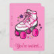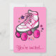 This invitation to a roller skating birthday party features a decorative pink skate. Let us know if we can help you make up your invite!
