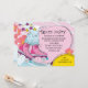 Roller Skating birthday party invitation in fun and funky bright vibrant colours , lines and flowers in the background and a very girly look . with a sketchy illustrative style.