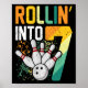 Rollin Into 7 Retro Bowling Birthday Party 7th Bir Poster