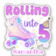 This cute and purple design features the phrase "Rolling Into 5". It is perfect for a roller skater's birthday celebration.