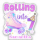 This cute and purple design features the phrase "Rolling Into 7". It is perfect for a roller skater's birthday celebration.