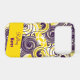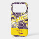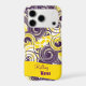 Here to personalise, is your curly and colourful case adorned with a broken purple and white spiral digital art design over a deep yellow background. Fill in the template field with your information, remove unwanted text and text ribbon or click "Customise it!" to change the font style, size, and colour.