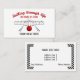 The perfect business card for anything bowling related! Features a front and back side with easy to update text. The front has a design with a bowling score card frame and bold text that reads "Rolling through life one frame at a time" coupled with pins and a red bowling ball. Beneath this is your name. The back features your contact information inside a chequered frame.
