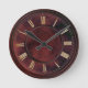 This clock design is a simple combination of a simulated rich, dark, dirty red stone texture with gold tone Roman numbers, details and text. Nice and elegant, for office or home.