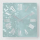 Roman Numbers Silver Gray Teal Mint Glitter Glam Square Wall Clock