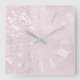 Roman Numbers Silver Pink Blush Green Glitter Glam Square Wall Clock