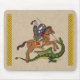 Patron saint of England since the 14th century, George was a late 3rd-early 4th century military tribune (martyred circa 303). According to legend, George heroically killed a dragon that had been terrorizing the countryside around Silena in Libya. This particular portrayal of the warrior-saint depicts him armed as a late Roman cavalryman.