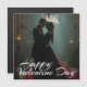 An elegant couple stands in a magnificent hall, surrounded by countless red rose petals adorning the floor. The room is illuminated by majestic chandeliers that create a romantic, mysterious atmosphere. The couple appear intimately connected, while the ambience provides the perfect backdrop for an unforgettable Valentine's Day.