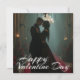 An elegant couple stands in a magnificent hall, surrounded by countless red rose petals adorning the floor. The room is illuminated by majestic chandeliers that create a romantic, mysterious atmosphere. The couple appear intimately connected, while the ambience provides the perfect backdrop for an unforgettable Valentine's Day.