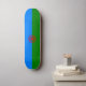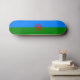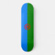 This design features the Romani flag, which is the international flag of the Romani people. The flag consists of a background of blue and green, representing the heavens and earth, respectively; it also contains a 16-spoke red chakra, or cartwheel, in the centre, which represents the itinerant tradition of the Romani people and is also an homage to the flag of India. The flag was approved by the representatives of various Romani communities at the first World Romani Congress (WRC), held in Orpington in 1971.