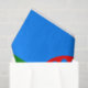 This design features the Romani flag, which is the international flag of the Romani people. The flag consists of a background of blue and green, representing the heavens and earth, respectively; it also contains a 16-spoke red chakra, or cartwheel, in the centre, which represents the itinerant tradition of the Romani people and is also an homage to the flag of India. The flag was approved by the representatives of various Romani communities at the first World Romani Congress (WRC), held in Orpington in 1971.
