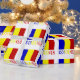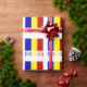 The Romanian Flag is a vertical tricolor with blue, yellow and red stripes. This design features the word ROMANIA under the flag in the colours of the flag. Share gift wrapping paper with your heritage, too.