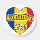 Leuke magneet met een hart afgebeeld met de Roemeense vlag erop. Op de tekst staat: Romanian girl De achtergrond is in de kleur wit. Leuk om te geven als cadeau of voor jezelf om te laten zien dat je trots bent om Roemeens te zijn. kleuren: rood, blauw en geel.