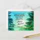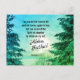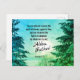 Inspirational scripture postcard depicts the setting sun flanked by beautiful pine trees covered with a blanket of snow. It features Bible Verse Romans 8:15, "You did not receive the spirit of slavery again to fear, but you received the Spirit of Adoption by whom we cry out, "Abba, Father."